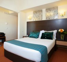 The rooms were tiny, walls damaged and marked from luggage being dragged in and out. Really needs some touch ups. There was no common space for us to visit with friends. We were not able to use the "restaurant" even though there were no customers. A hotel should have a place where people can congregate, make plans for the day or relax with a glass of wine.